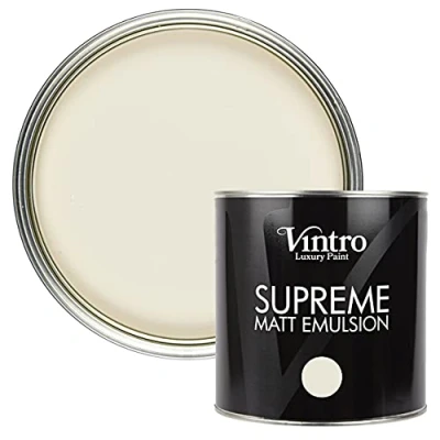 Vintro Luxury Matt Emulsion Cream Smooth Chalky Finish Multi Surface Paint for Walls, Ceilings, Wood and Metal 2.5L (Ermine)