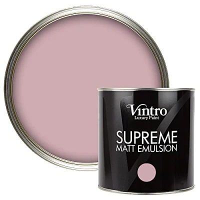 Vintro Luxury Matt Emulsion Dusky Pink Smooth Chalky Finish Multi Surface Paint for Walls, Ceilings, Wood and Metal 2.5L (Albert Bridge)