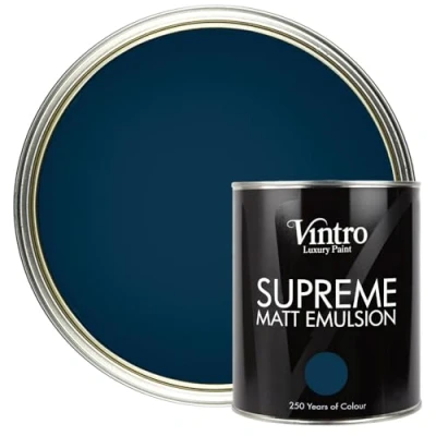 Vintro Luxury Matt Emulsion Nightfall Smooth Chalky Finish Multi Surface Paint for Walls, Ceilings, Wood and Metal (Dark Blue) 1L