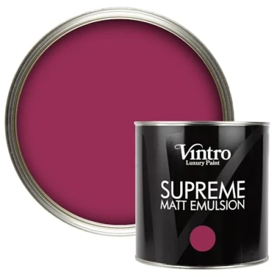 Vintro Luxury Matt Emulsion Smooth Chalky Finish Multi Surface Paint for Walls, Ceilings, Wood and Metal 2.5L (Magenta Rosy Raven, 2.5 Litre)