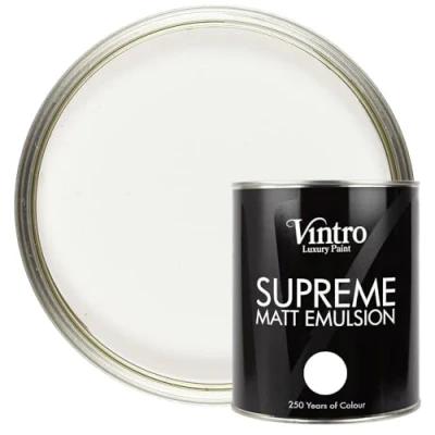 Vintro Luxury Matt Emulsion Smooth Chalky Finish Multi Surface Paint for Walls, Ceilings, Wood and Metal (White) 1L