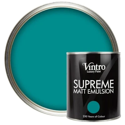 Vintro Luxury Matt Emulsion Teal Smooth Chalky Finish Multi Surface Paint for Walls, Ceilings, Wood and Metal 1L (Teal)