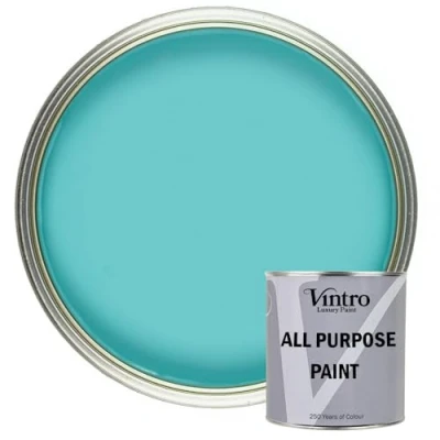 Vintro Paint All Purpose Paint. Multi Surface Matt For Indoor/Outdoor Use. Wood, Walls, Doors, Cabinets, Metal, Plastic, Masonry, Furniture, Glass, Tile, Radiators & Pipes. 250ml (Turquoise)