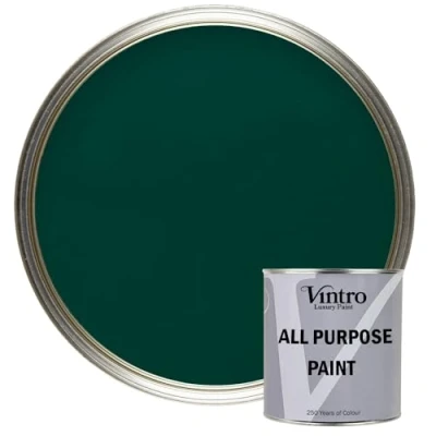 Vintro Paint All Purpose Paint. Multi Surface Matt For Indoor/Outdoor Use. Wood, Walls, Doors, Cabinets, Metal, Plastic, Masonry, Furniture, Glass, Tiles, Radiators & Pipes. 250ml (Dark Green)