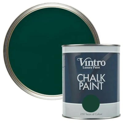 Vintro Paint Chalk for Furniture, Walls and Woodwork. Interior Use. Quick Dry. 1 Litre (Dark Green Woodpecker Green)