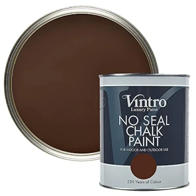 Vintro Paint No Seal Chalk Dark Brown Interior & Exterior Use Furniture Walls Wood Metal 1 Litre (Ribwort Brown)