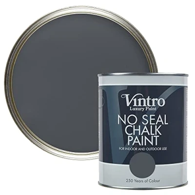 Vintro Paint No Seal Chalk Dark Grey Interior & Exterior Use Furniture Walls Wood Metal 1 Litre (Wigeon Grey)