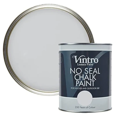 Vintro Paint No Seal Chalk Light Grey Interior & Exterior Use Furniture Walls Wood Metal 1 Litre (Bidston Grey)