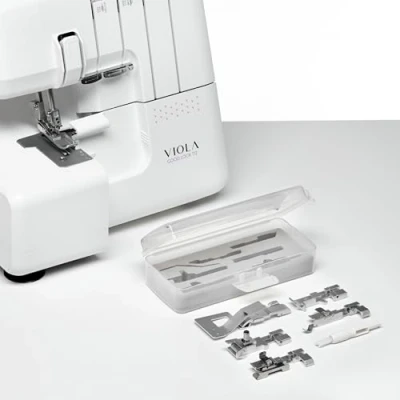 Accessories included in the kit: Cording Foot; Invisible Hem Foot; Curling Foot; Bead and Sequin Foot; Elastic Application Foot; Needle Threader A complete and quality kit for your VIOLA T12 overlock Everything you need to express your creativity at the highest level Enhance the characteristics of your VIOLA T12 with this accessory box Essential feet kit for your VIOLA T12 overlock