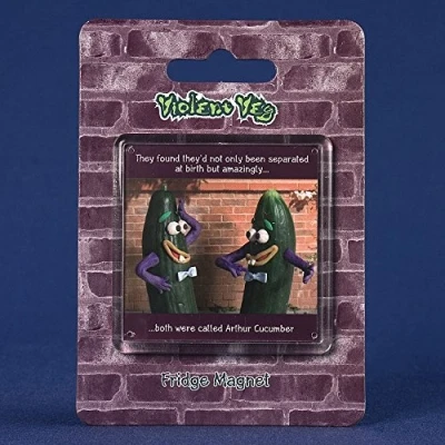 Violent Veg Fridge Magnet - Arthur Cucumber "They found they'd not only been separated at birth but amazingly... ... both were called Arthur Cucumber" Size: 6 cm square