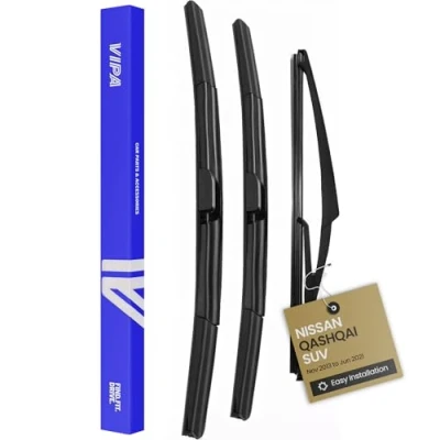 Fits: NISSAN QASHQAI SUV (Nov 2013 to Jun 2021): Specifically designed for seamless compatibility with all NISSAN QASHQAI SUV models from Nov 2013 to Jun 2021, ensuring a precision fit and optimal performance. Blade Sizes - Drivers: 26" / 650mm - Passenger: 17" / 430mm - Rear: 12" / 300mm High-Quality, All-Weather Performance: Made with premium-grade rubber and advanced aerodynamic design to provide a smooth, streak-free wipe in all weather conditions, including heavy rain and snow Easy DIY Installation: Designed for effortless attachment, this wiper blade Set features a quick and secure installation process, requiring no special tools or professional assistance. Durable & Long-Lasting: Engineered with reinforced materials and UV-resistant coating, these wipers ensure extended lifespan and superior resistance against wear and tear.