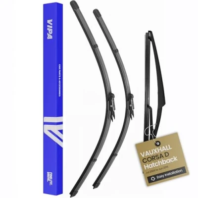 Fits: VAUXHALL CORSA D Hatchback (Jul 2006 to Jun 2015): Specifically designed for seamless compatibility with all VAUXHALL CORSA D Hatchback models from Jul 2006 to Jun 2015, ensuring a precision fit and optimal performance. Blade Sizes - Drivers: 26" / 650mm - Passenger: 16" / 400mm - Rear: 12" / 300mm High-Quality, All-Weather Performance: Made with premium-grade rubber and advanced aerodynamic design to provide a smooth, streak-free wipe in all weather conditions, including heavy rain and snow Easy DIY Installation: Designed for effortless attachment, this wiper blade Set features a quick and secure installation process, requiring no special tools or professional assistance. Durable & Long-Lasting: Engineered with reinforced materials and UV-resistant coating, these wipers ensure extended lifespan and superior resistance against wear and tear.