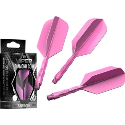 Viper Diamond Core Integrated Dart Flight & Shaft System Precision Darting Accessory with Tough Polymers for Enhanced Performance, Set of 3, InBetween Shaft, Slim Flight, Neon Pink