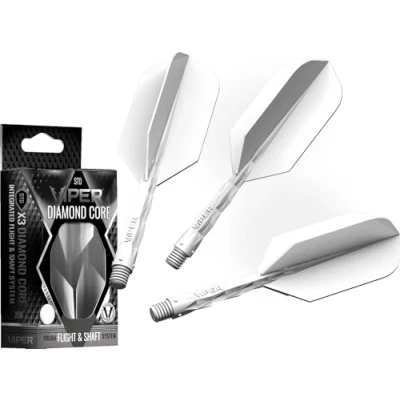 Viper Diamond Core Integrated Dart Flight & Shaft System Precision Darting Accessory with Tough Polymers for Enhanced Performance, Set of 3, InBetween Shaft, Slim Flight, White