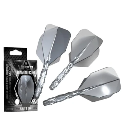 Professional Darts Performance: Integrated flight & short shaft reduce drag for stable trajectory, boosting accuracy when throwing steel or soft tip darts—perfect for serious competitors. 90° Wing Angle for Enhanced Targeting: Enjoy balanced flights and fewer misses—ideal for mastering pro-level precision in your quest for top dartboard scores. Avionics-Grade Durability: Built to endure intense gameplay, this lightweight system enhances throw consistency, letting your darts fly true every time. Diamond Finger Crown Grips: Ensure consistent, repeatable finger placement, delivering the control professional darts players need for peak performance. Universal 2BA Thread: Seamlessly integrate the Viper Diamond Core with most metal and plastic tip darts, unlocking superior speed, stability, and accuracy in every throw.
