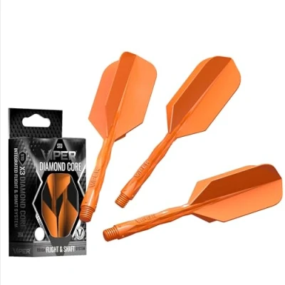 Viper Diamond Core Integrated Dart Flight & Shaft System Precision Darting Accessory with Tough Polymers for Enhanced Performance, Set of 3, Medium Shaft, Slim Flight, Neon Orange