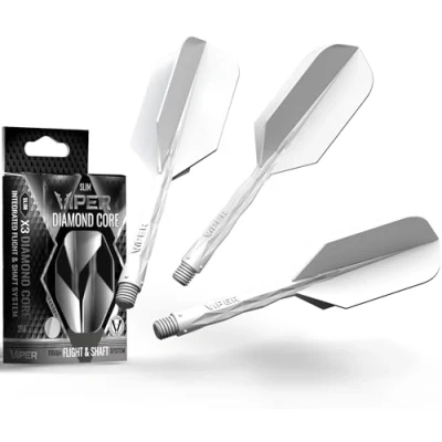 Professional Darts Performance: Integrated flight & short shaft reduce drag for stable trajectory, boosting accuracy when throwing steel or soft tip darts—perfect for serious competitors. 90° Wing Angle for Enhanced Targeting: Enjoy balanced flights and fewer misses—ideal for mastering pro-level precision in your quest for top dartboard scores. Avionics-Grade Durability: Built to endure intense gameplay, this lightweight system enhances throw consistency, letting your darts fly true every time. Diamond Finger Crown Grips: Ensure consistent, repeatable finger placement, delivering the control professional darts players need for peak performance. Universal 2BA Thread: Seamlessly integrate the Viper Diamond Core with most metal and plastic tip darts, unlocking superior speed, stability, and accuracy in every throw.