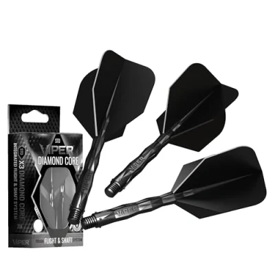 Professional Darts Performance: Integrated flight & short shaft reduce drag for stable trajectory, boosting accuracy when throwing steel or soft tip darts—perfect for serious competitors. 90° Wing Angle for Enhanced Targeting: Enjoy balanced flights and fewer misses—ideal for mastering pro-level precision in your quest for top dartboard scores. Avionics-Grade Durability: Built to endure intense gameplay, this lightweight system enhances throw consistency, letting your darts fly true every time. Diamond Finger Crown Grips: Ensure consistent, repeatable finger placement, delivering the control professional darts players need for peak performance. Universal 2BA Thread: Seamlessly integrate the Viper Diamond Core with most metal and plastic tip darts, unlocking superior speed, stability, and accuracy in every throw.