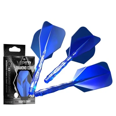 Professional Darts Performance: Integrated flight & short shaft reduce drag for stable trajectory, boosting accuracy when throwing steel or soft tip darts—perfect for serious competitors. 90° Wing Angle for Enhanced Targeting: Enjoy balanced flights and fewer misses—ideal for mastering pro-level precision in your quest for top dartboard scores. Avionics-Grade Durability: Built to endure intense gameplay, this lightweight system enhances throw consistency, letting your darts fly true every time. Diamond Finger Crown Grips: Ensure consistent, repeatable finger placement, delivering the control professional darts players need for peak performance. Universal 2BA Thread: Seamlessly integrate the Viper Diamond Core with most metal and plastic tip darts, unlocking superior speed, stability, and accuracy in every throw.