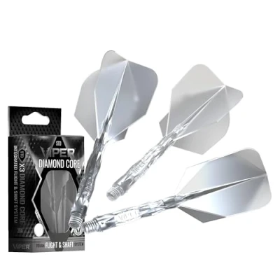 Professional Darts Performance: Integrated flight & short shaft reduce drag for stable trajectory, boosting accuracy when throwing steel or soft tip darts—perfect for serious competitors. 90° Wing Angle for Enhanced Targeting: Enjoy balanced flights and fewer misses—ideal for mastering pro-level precision in your quest for top dartboard scores. Avionics-Grade Durability: Built to endure intense gameplay, this lightweight system enhances throw consistency, letting your darts fly true every time. Diamond Finger Crown Grips: Ensure consistent, repeatable finger placement, delivering the control professional darts players need for peak performance. Universal 2BA Thread: Seamlessly integrate the Viper Diamond Core with most metal and plastic tip darts, unlocking superior speed, stability, and accuracy in every throw.