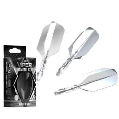 Viper Diamond Core Integrated Dart Flight & Shaft System Precision Darting Accessory with Tough Polymers for Enhanced Performance, Set of 3, Short Shaft, Slim Flight, Clear