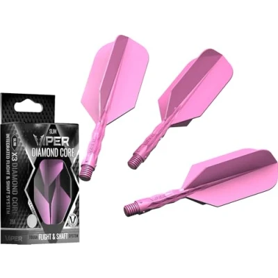 Viper Diamond Core Integrated Dart Flight & Shaft System Precision Darting Accessory with Tough Polymers for Enhanced Performance, Set of 3, Short Shaft, Slim Flight, Neon Pink