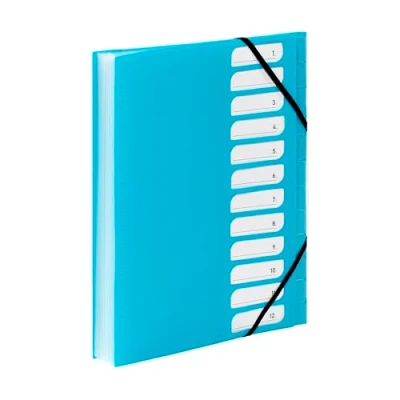 Clever and effective: a desk file with 12 positions that will become essential for mastering your work. Perfect for storing papers at home or at school! Design: a brightly coloured accordion file in polypropylene 5/10 that will allow you to organize your storage system in style. The cover is textured and the interior is colourless polypropylene. Practical: This A4 file folder closes with an elastic band. Your documents are stored and protected even on the go. Folder with 3 flaps integrated at the end of the sorter. AUTHENTIC PRODUCT: a product manufactured by Viquel, specialist in polypropylene office supplies and school items at the fairest price. GUARANTEE: You get 100% money back that allows you to return or exchange your sorter if you change your mind.