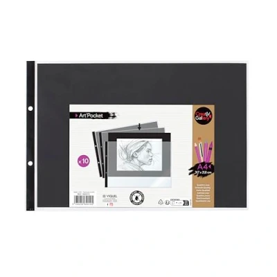 Viquel Set of 10 A4 Perforated Plastic Pockets ART'POCKET CREATIV'GALLERY with Black Sheet for Presentation Ideal Photos or Drawings Landscape Format
