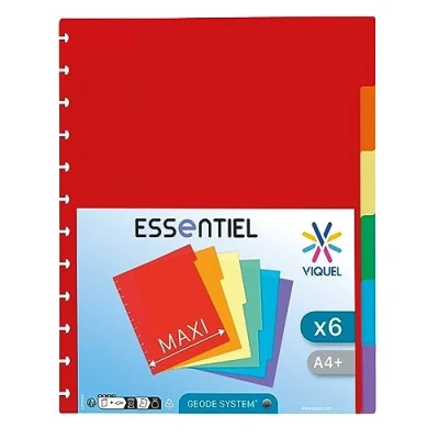 Maximum size: these A4+ dividers are designed for A4 maxi binders. They can therefore be used with punched pockets without the tab being covered. Your index is always readable. Size: 24.5 x 31 cm. Geode perforation: These dividers have a specific perforation for Geode file folders. The holes are different and do not fit standard binders. Resistance: These dividers are made of 4/10 polypropylene and will last over time. Authentic: This product is manufactured by Viquel, specialist in office supplies.