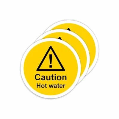 Caution Hot water self-adhesive vinyl signs / stickers Weatherproof, waterproof and UV resistant for years of indoor or outdoor use Our safety signs meet the requirements of current legislation, including BS EN ISO 7010 Quickly apply to any clean, dry and flat surface Ideal for use in commercial, residential and public buildings