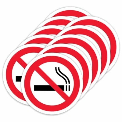 No Smoking self-adhesive vinyl signs / stickers Weatherproof, waterproof and UV resistant for years of indoor or outdoor use Our safety signs meet the requirements of current legislation, including BS EN ISO 7010 Quickly apply to any clean, dry and flat surface Ideal for use in commercial, residential and public buildings