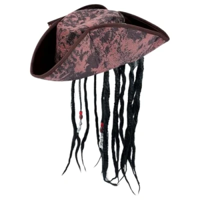 VIROSA Caribbean Pirate Hat with Beads, Tricorn Costume Accessory for Adults