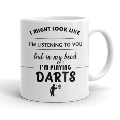 VIROSA Darts Mug “in My Head I’m Playing 11oz Ceramic Funny Gift for Pub Gamers Birthday Men