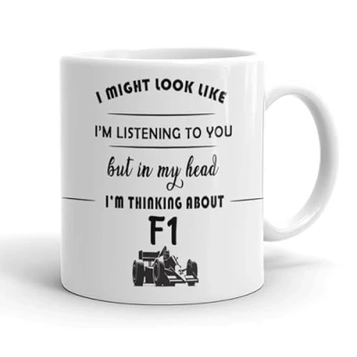VIROSA F1 Mug “in My Head I’m Thinking About 11oz Ceramic Coffee Cup Gift for Formula One Fans Motorsport Present