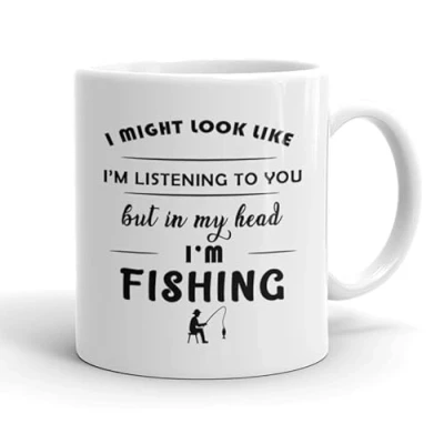 VIROSA Fishing Mug “in My Head I’m 11oz Ceramic Funny Gift for Fishermen Birthday or Relaxing Hobby Present