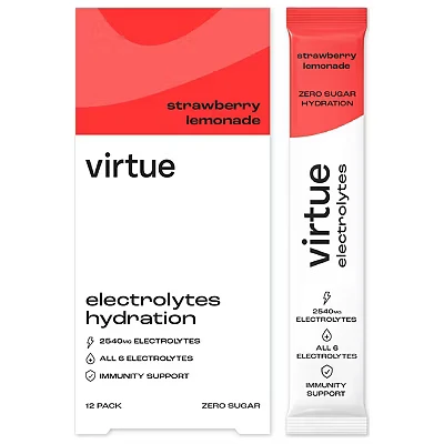 45 Advantage card points. Virtue Electrolytes Hydration Powder Strawberry Lemonade 12 Sachets FREE Delivery on orders over 45 GBP.