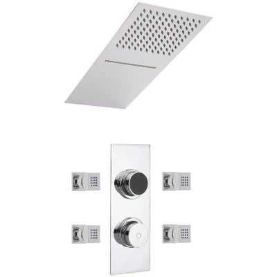 Vis Modern Digital Three Outlet Thermostatic Shower with 200mm x 500mm Wall Mounted Rainfall and Waterblade Head Body Jets Chrome
