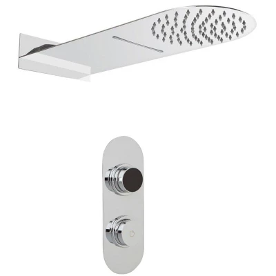 Vis Modern Digital Two Outlet Thermostatic Shower with 200mm x 500mm Wall Mounted Rainfall and Waterblade Head Chrome Milano