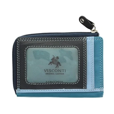 VISCONTI Leather Rainbow Collection PHI Slimline Credit Card Purse RB110 Blue Multi