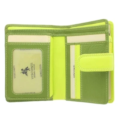 Visconti Rainbow Leather Ladies Purse Style RFID Blocking RB51 Lime Multi