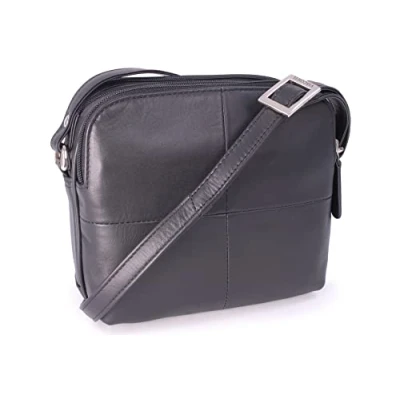 VISCONTI Women's Small Leather Crossbody Bag Shoulder With Long Adjustable Strap Multiple Pockets HOLLY 18939 Black