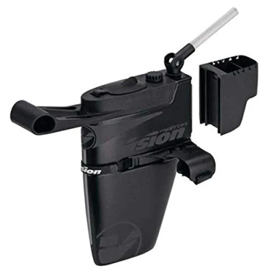 CFD refined integrated bottle with bento box and computer mount. Articulated straw mount to allow precise positioning and unobtrusively fold-away. Patented and removable labyrinth water fill-spout for rapid refills without splashing. Forward computer mount with easy line-of-sight. standard and Garmin computer lid options.