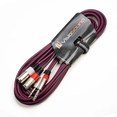VisioSound 2 x Male XLR to 6.35mm 1/4" Stereo TRS Jack Balanced Twin Lead/Patch Cable 3 Colours (3m purple)