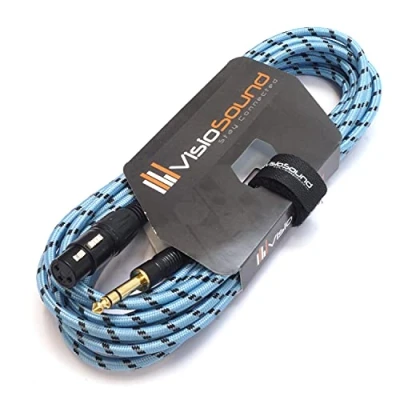 VisioSound Female XLR to 6.35mm Stereo TRS Jack Lead/Balanced Signal/Audio Patch Cable (6m, Blue/Black)