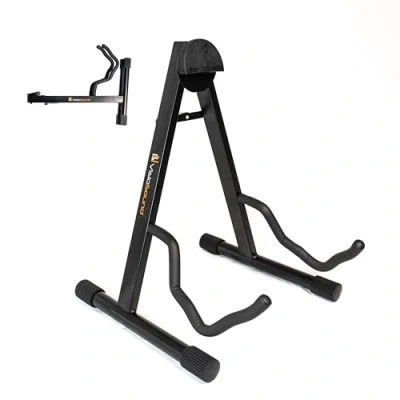 Sturdy Construction: Crafted with durable steel tubing, ensuring long-lasting stability and support for your guitar. Space-Saving Design: Compact and lightweight, allowing for easy storage and portability. Fits in most guitar bag pockets! Adjustable Cradle: Features a soft, EVA padded and adjustable cradle to accommodate various guitar body shapes and sizes. Non-Slip Base: Equipped with non-slip rubber feet, preventing unwanted movement and protecting your floors. Versatile Compatibility: Suitable for most acoustic, electric, bass and classical guitars, offering a reliable solution for secure storage. Rubber Backplate: An angled rubber backplate ensures your instrument is securely stored without causing any damage to your pride and joy.
