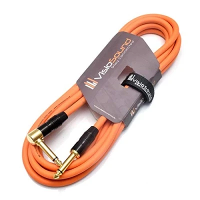 Gold plated 6.35mm 1/4' jack to angled jack lead Premium pro range instrument cable Colour: orange Ideal for use with guitars, bass and other instruments Hook and loop cable tie included