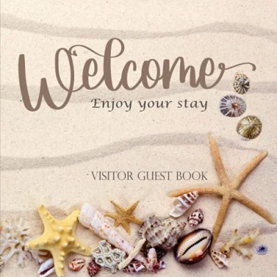 Visitor Guest Book: Welcome Book for AirBnB, Bed & Breakfast Sign in Log House, Vacation Rental, Beach House Sandy Design