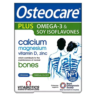 48 Advantage card points. Vitabiotics Osteocare® Plus combines the original Osteocare tablet formula with soy isoflavones and omega-3 capsules in a convenient 2-in-1 dual pack for even greater support for your bones. FREE Delivery on orders over 45 GBP.