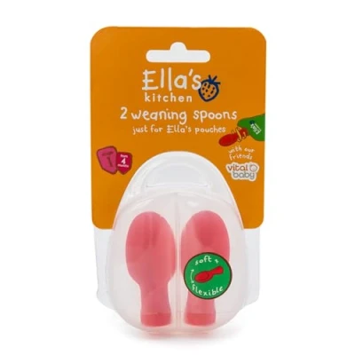 Vital Baby Ella's Kitchen Pouch Spoon Tips Weaning Spoons Soft, Gentle and Flexible BPA, Phthalate & Latex Free Hygienic Travel Case Included 4m+ 2pk Red