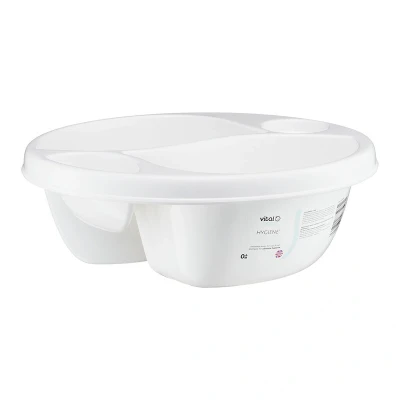 The Vital Baby Hygiene Top&Tail Bowl features dual compartments for safe sponge separation, is made from BPA, latex, and phthalate-free materials, and is compact for home or travel use. Its coordinated design matches other bath essentials for a complete, hygienic baby care routine.